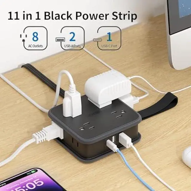 11-in-1 Power Strip with USB PortsWith 8 outlet and 3 USB ports, the extension cord with multiple outlets can charge up to 11 devices, so you don't have to worry about the lack of charging ports! The USB-C port has a maximum power of 5V/3A and can charge your iPhone 12 up to 40% in half an hour, so there's no waiting
