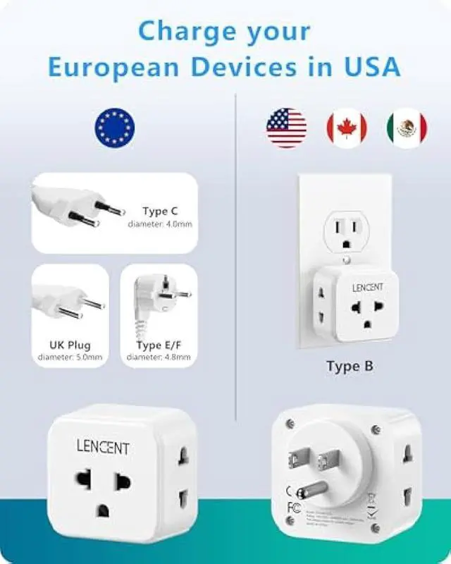 European Devices: You can use your devices from European countries in US with our upgraded EU plug adapter. Aiming to connect Type C/E/F plugs from Europe (Belgium, Finland, France, Germany, Greece, Netherlands, Norway, Poland, Portugal, Spain, Sweden and so on) with American Wall Outlet. Ideal for electronics from abroad or hosting foreign friends at home such as smartphones, laptops, shaver, razors, lights, hair dryer, straightener, curlers, toothbrush, curling iron and more