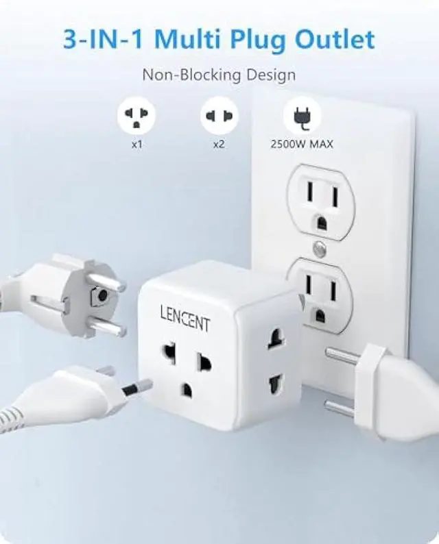 Safety Guaranteed & Practical: LENCENT 3-in-1 multi plug adapter is made of 1382 fireproof material, CE FCC certified, which greatly improves the durability and safety. Suitable for any indoor place, especially bedrooms, bathrooms and kitchens, it is a must-have choice for families.