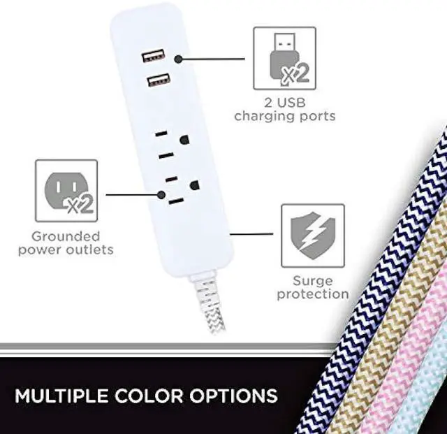 Décor The braided fabric power cord comes in a gray and white chevron pattern that can add a personalized touch to your home décor or office space. The plug and outlets for this unit feature a corresponding white finish to further accentuate the color scheme.