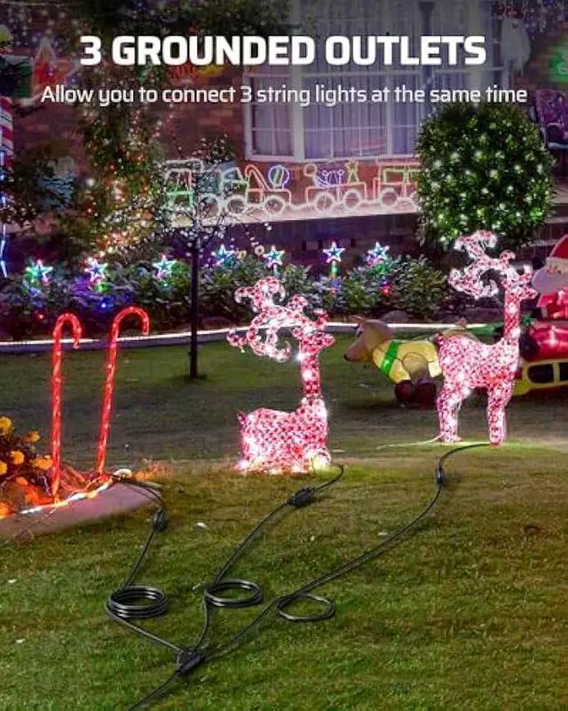 1 to 3 Cord Splitter 40 Ft total length (22+6+6+6); expands 1 wall outlet into 3 extended outlets (up to 28 feet from end to end); black 3-way power cord splitter helps use less cords to set up landscape lighting and Christmas decoration easily