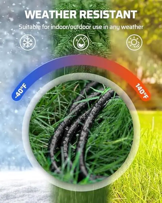 Free of Stiffness Appropriate 16 gauge thickness and unique material keep its flexibility; power cord stays soft in cold weather when setting up outdoor lightings; keeps your yard organized and clutter free; certified to ETL