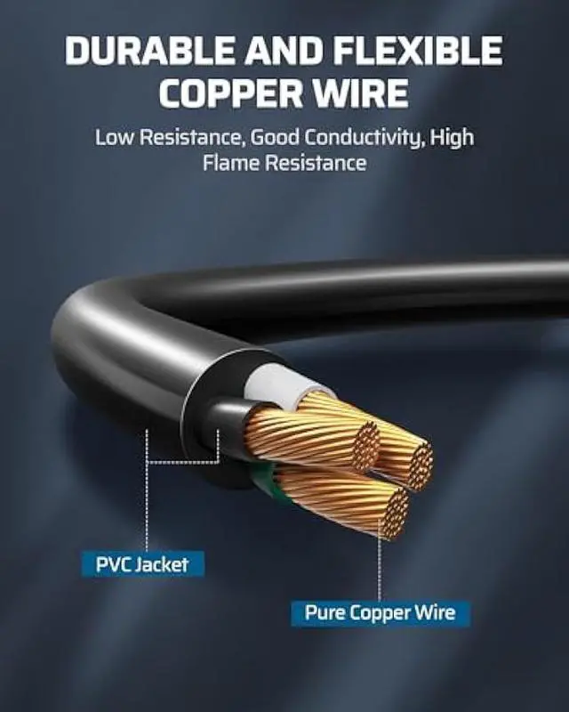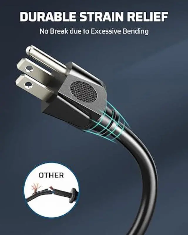 16/3C Gauge Cord AC 125V, 13 AMP, 1625W power rated; built with all-copper wire, reinforced blades, and double jacketed cords; 16 AWG heavy duty cable allow you to power multiple appliances at the same time