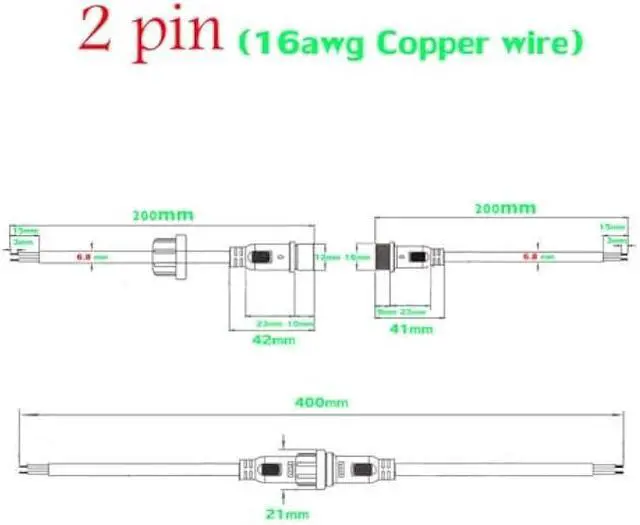 Specification: 2 pin male & female IP68 waterproof connectors with 16AWG wire.