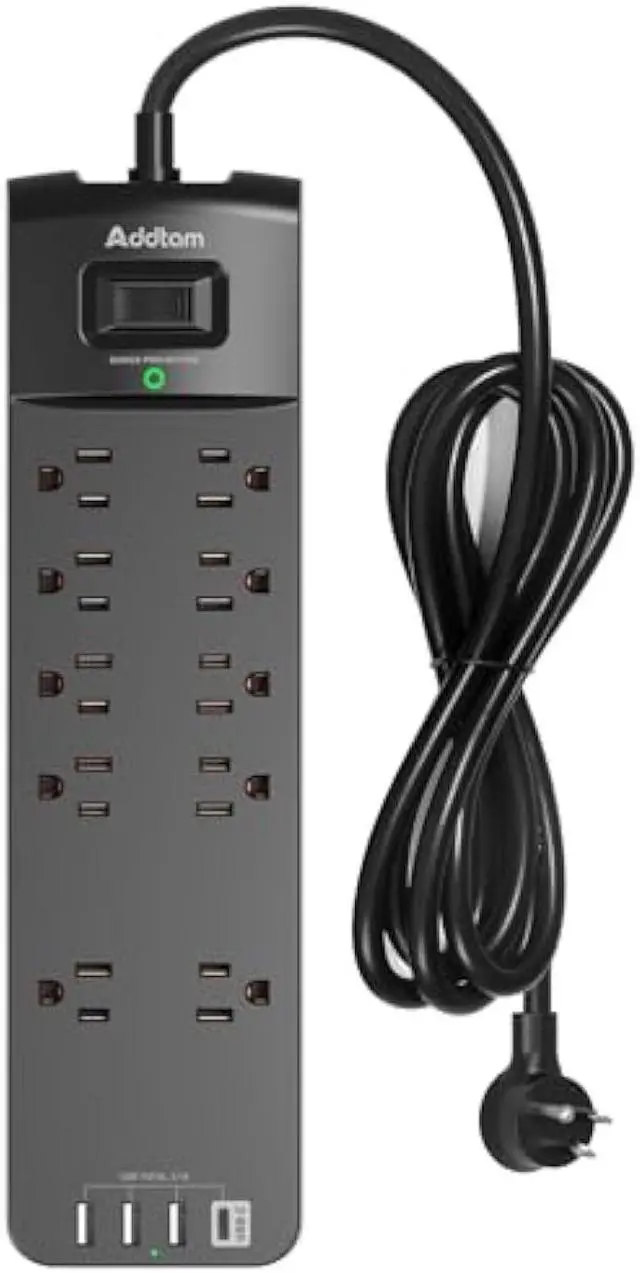 Power Strip - Addtam Surge Protector with 10 Outlets and 4 USB Ports, 6 Feet Extension Cord with Flat Plug, 2700 Joules, ETL Listed, Black