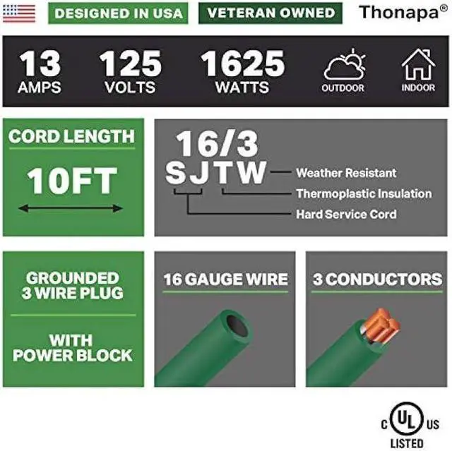COMMITMENT TO QUALITY: Thonapa is a U. S. Veteran owned company, and we stand behind the construction of our outdoor extension cords. If anything goes wrong with your cords, we're here to help resolve any issues that may arise.