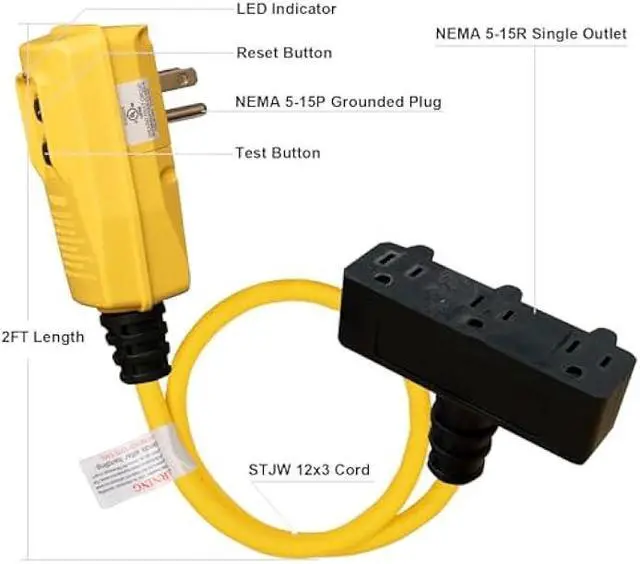Always Safe The GFCI features low power consumption and long service life. The surge protection and lightning protection function withstanding 6 kilovolt. Performed 6000+ times factory test, which is twice the testing times of UL standard.