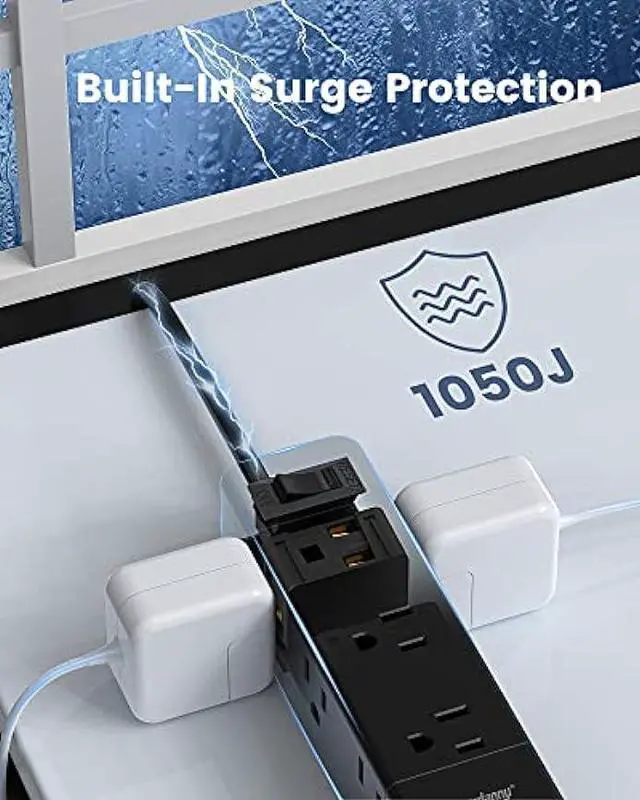 3-Side Design & Space Outlets This black power strip surge protector allocates the outlets evenly on 3 sides with them wide-spaced (W= 1.6 inches), which is spaced enough to fit multiple bulky plugs or power adapters without blocking each other. The compact desigh saving more space for your home, office, and college dorm room.