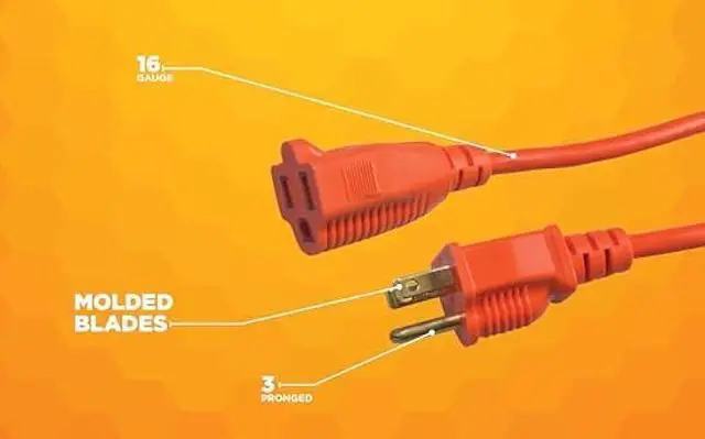 • 16 GAUGE; 3-pronged; 25 ft extension cord provides 13 AMP; 1625 watts and 125 volts