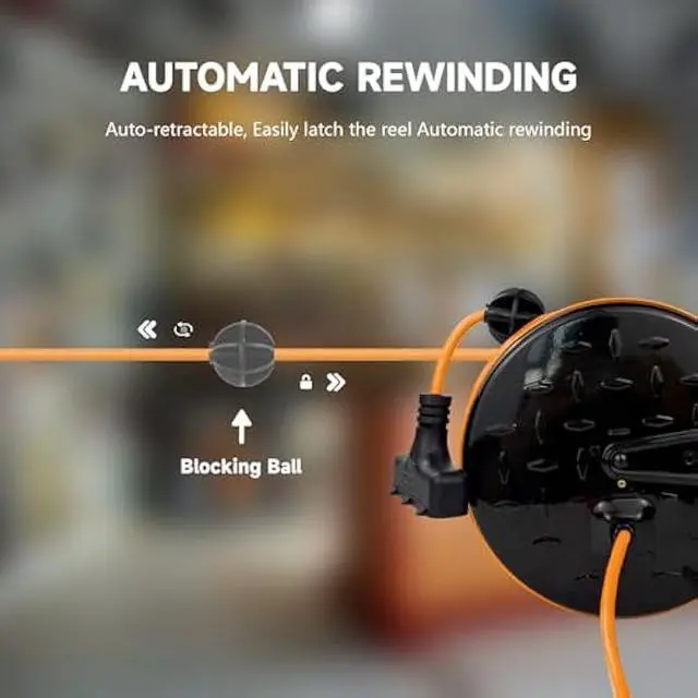 Automatic Retractable - The power cord reel can retract quickly and smoothly through the automatic guide rewind mechanism, and the ratchet system can lock any length of rope.