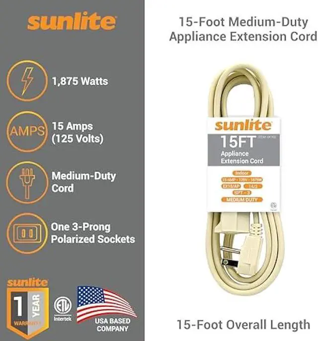 125 VOLT - With 125 Volts, this appliance extension cord can take up to 1875 Watts