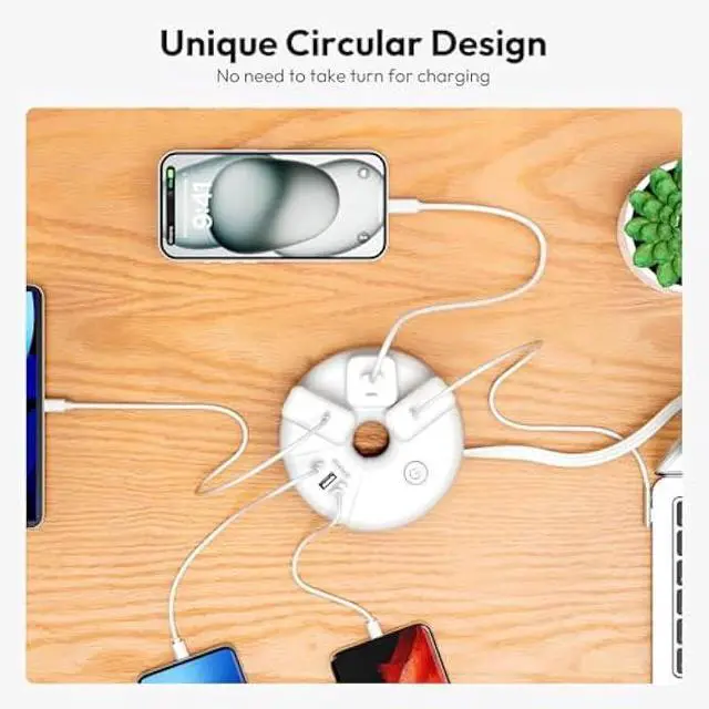 Power Strip Extension Cord with Multiple Outlets & USB USB desktop power strip with switch comes with 3 AC outlets 3 USB (1 USB C) charging ports and supports a wide range of voltage (100-240V), so you can simultaneously charge your iphone, ipad, camera, smartphone, laptop or tablet when traveling abroad. Never have to worry that you may lack of outlets for your devices with circle power strip.