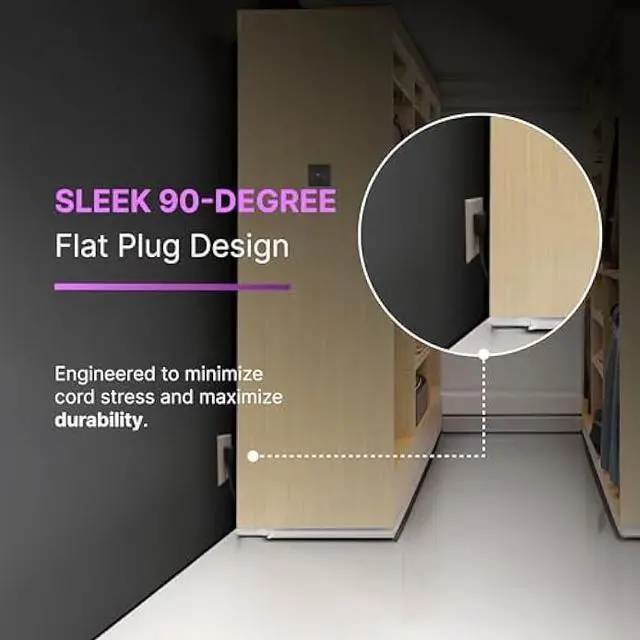 FLAT PLUG - SPACE SAVER - Allows furniture and appliances to be placed closer to the wall; 1 grounded outlet; 3 prong plug