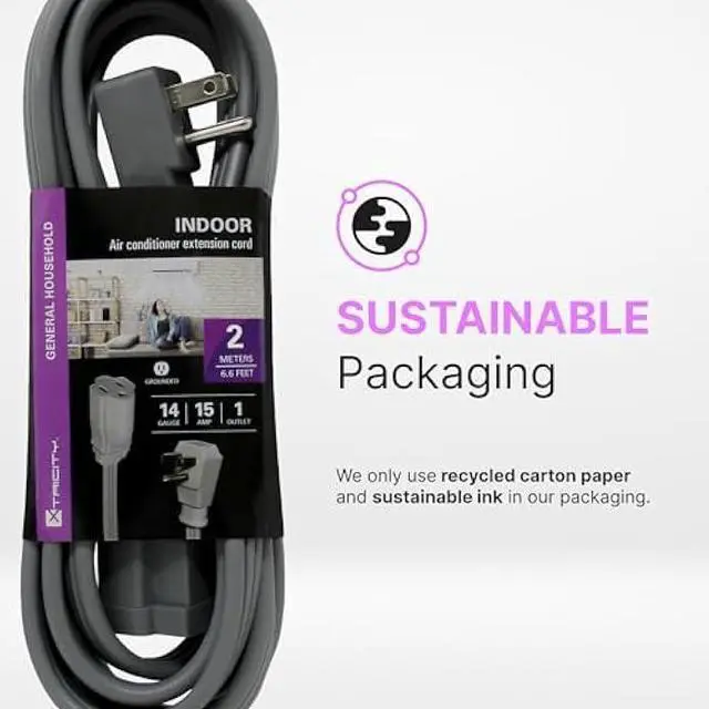 6 FOOT HEAVY DUTY GREY EXTENSION CORD - Provides extra flexibiltiy with 6.6 feet of extension; 125 VAC 15A 1875W 60Hz