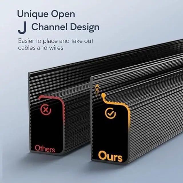 Generous Capacity & Reliable Safety: The cord management are large enough to accommodate at least 10 cables, meeting most wire management needs. The use of PVC plastic material ensures excellent safety performance. Our desk cable management does not produce open flame at high temperatures, only presenting a charred surface, which greatly enhances the safety features of our cable raceway