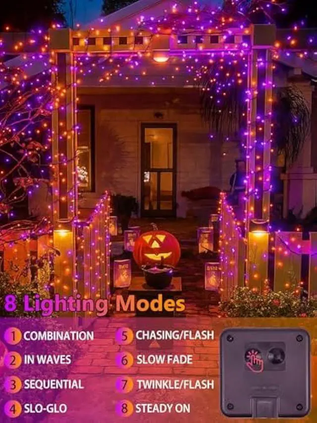 8 Modes & Memory Function Fairy Lights: The solar fairy lights create a Halloween atmosphere with 8 different lighting modes(Combination, Waves, Sequential, Slo-glo, Chasing/Flash, Slow Fade, Twinkle/Flash, and Steady-on). Easily adjust the lighting mode by pressing the mode button to set your preferred style. A built-in memory chip will remember your preferred lighting mode, eliminating the need to reset it each time
