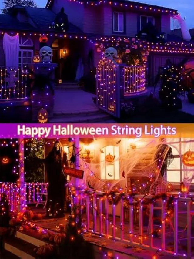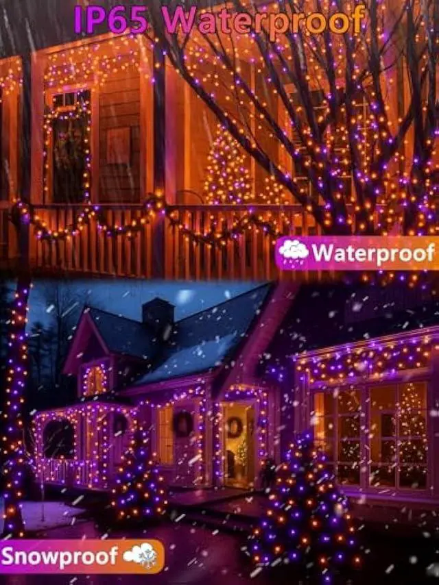 Purple Halloween Lights: Illuminate your Halloween nights with the captivating glow of our orange and purple solar lights. The Halloween decorations lights outdoor (4-pack total 180ft 320led) are upgraded with the following features: unique 8 lighting modes, memory function, and auto on/off, higher solar-powered conversion with a larger size solar panel, a larger capacity built-in battery, and IP65 waterproof performance