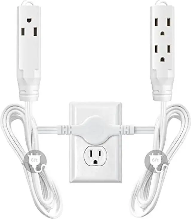 12 Feet Twin Extension Cord - 6 ft on each side. Slim design allows you to hide behind any bed, tv, couch, sofa, computer desk or furniture.