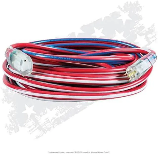 MADE IN AMERICA: Display AMERICAÄôS COLORS on the jobsite with this patriotic striped contractor grade extension cord