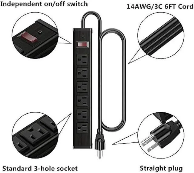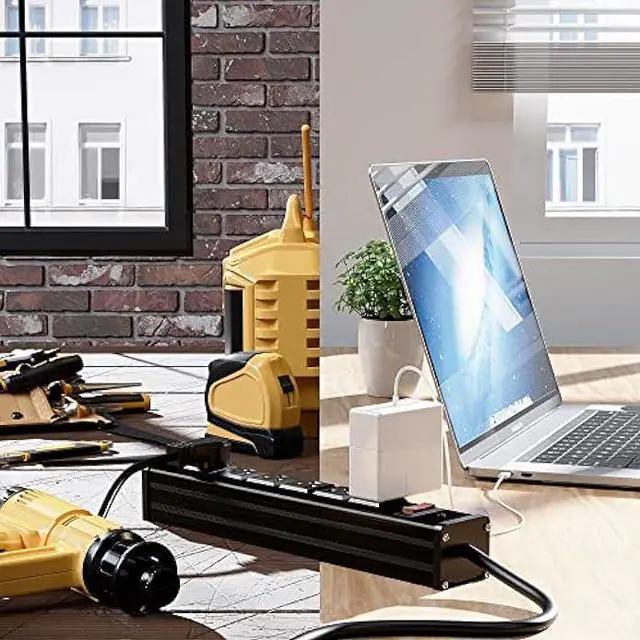 Super protector power stripheavy duty, Metal construction and this 6-outlet surge protector power strip is impact-resistant and is perfect for high traffic places like professional workstations and workshops