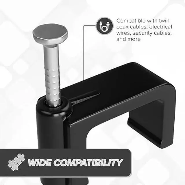 Cable Cord Management: Organize coax cables discreetly and securely with these nail cable clips. Our wire mounting clips are easy to install, and they reduce clutter while taking up minimal space.