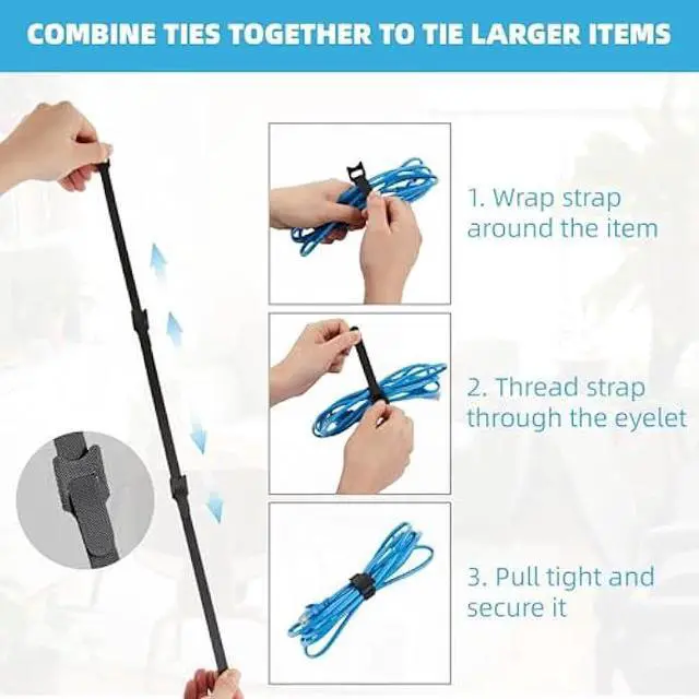 MULTIPLE USE- These bundling ties are ideal fasteners for cord organization, wire management. And you can even use them end to end to tie larger items.