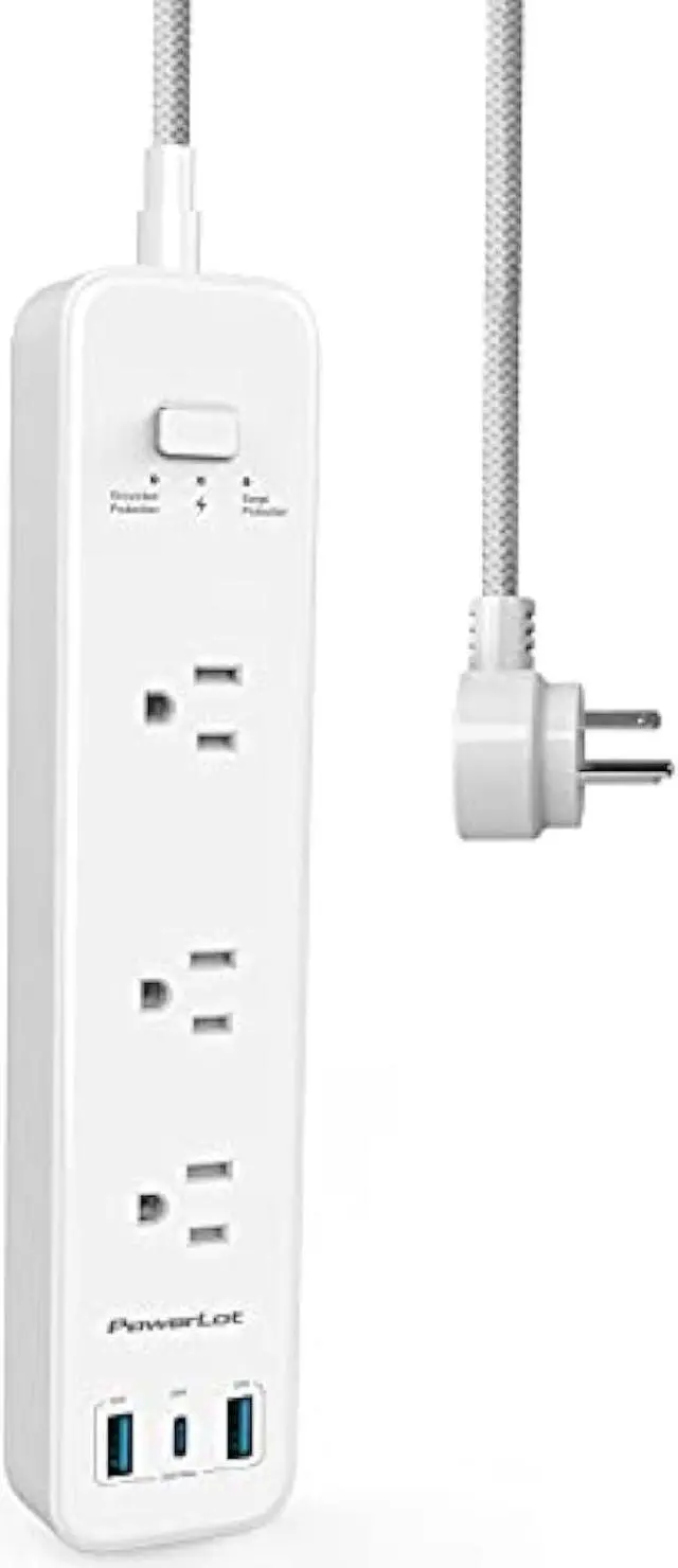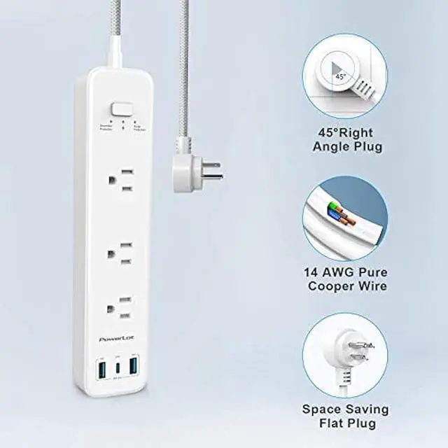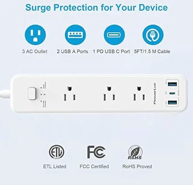 [All Round Safety] PowerLot Surge Protector Power Strip certificated by FCC, ETL and UL listed, with built in safe guards to protect both the power strip and your charging devices form over-heat, over-charge, over-current, and short circuit; 3 LED indicators to show power, surge protection, and grounding, always ensures a safe working condition for PowerLot customer