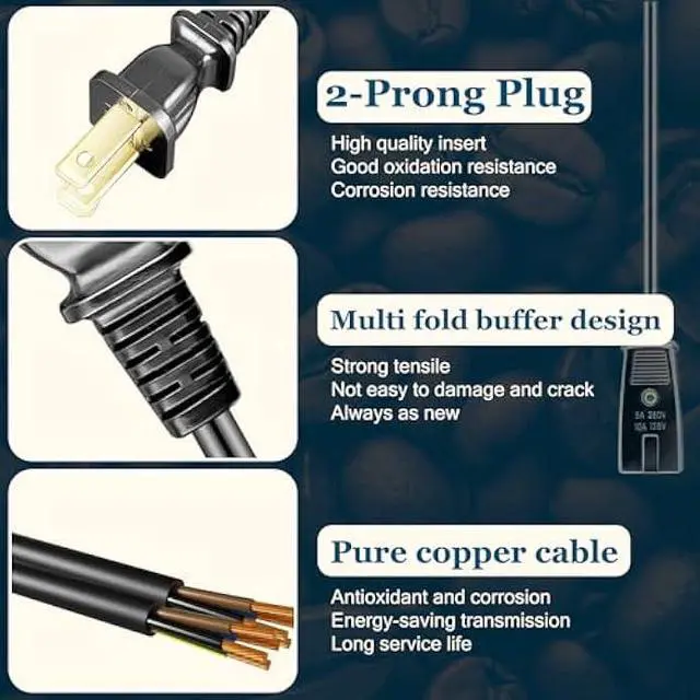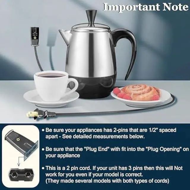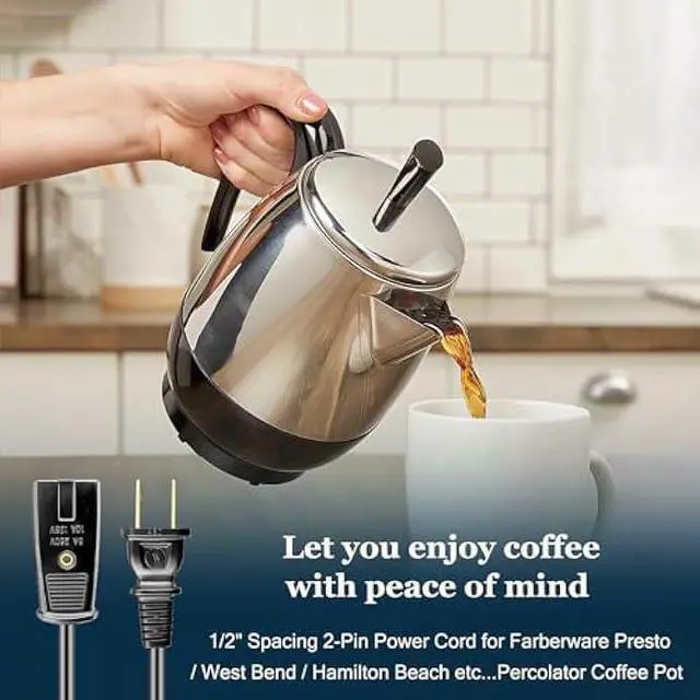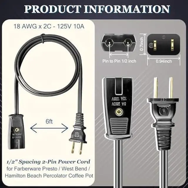 HASMX 6ft Long 1/2 Inch Pin Spacing Power Cable Cord for Farberware & Presto Super Speed Coffee Pot Percolator 1/2 Inch - Also for Many Small Electronics Home Appliance with 1/2 Inch pin Spacing
