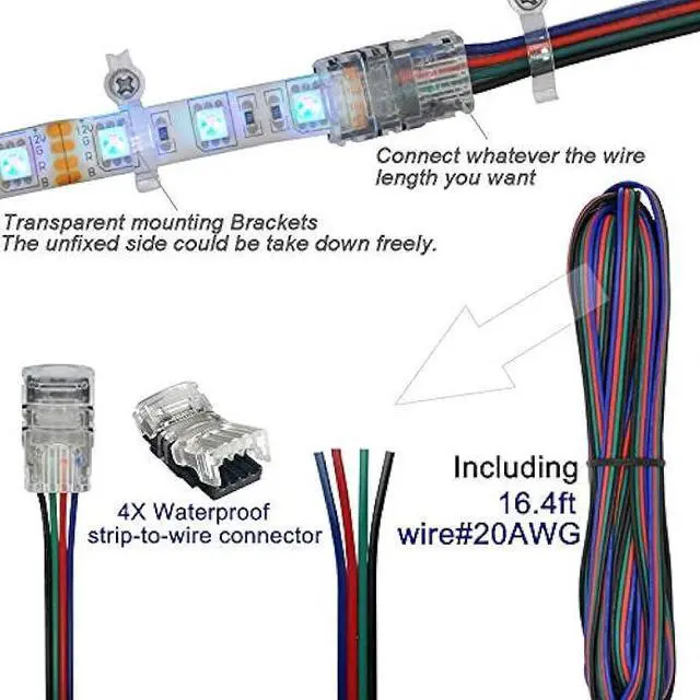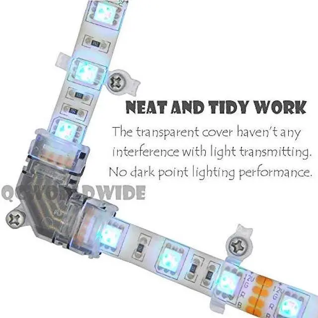 NO NEED SOLDERING, NO DARK POINTS'CONNECTION. VARIOUS CONNECTORS including light strips corner connection, branch Tconnection, strip to strip connection, strip to wire end connection, light strips to controller connection, strips'sturdy mounting ect. Perfect for your lighting project DIY program