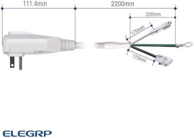 Easy Installation Comes with a 18AWG x 3C power cord of about 2.2 meters long with terminals for Hot wire (black), Neutral wire (white) and Ground wire (green) for easy wiring. Rated 120 Volt 10 Amp, 1200 Watt.