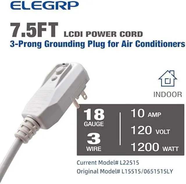 Suitable for A/C The LCDI power cord is suitable for air conditioner loads, such as portable air conditioners, window air conditioners and PTAC (Packaged Terminal Air Conditioner) for indoor use.