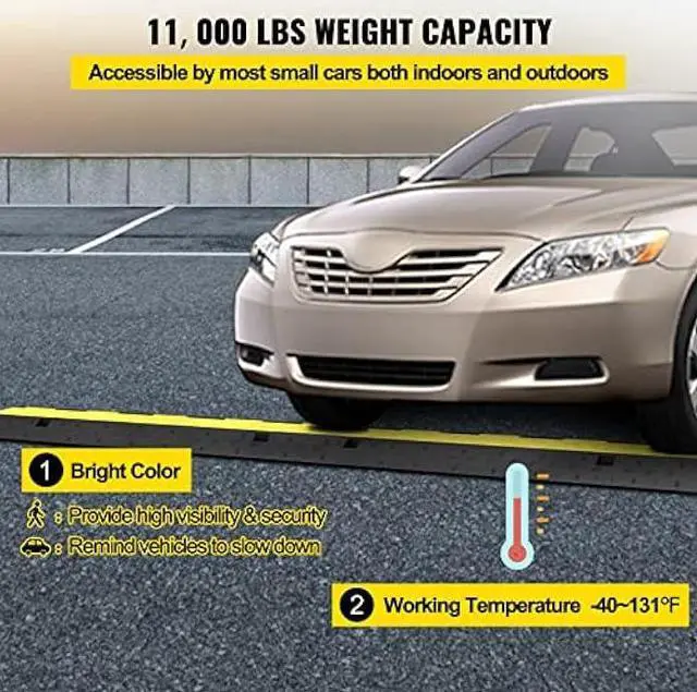 Capacity: Traditional black+yellow color provides greater visibility at night and in low light environments. The cable protector ramp incorporates a unique design in its appearance to capture the attention of passer-by and drivers to slow off. 11, 000Lbs load capacity ensures that you can drive your car over the ramp without affecting the cables running inside.