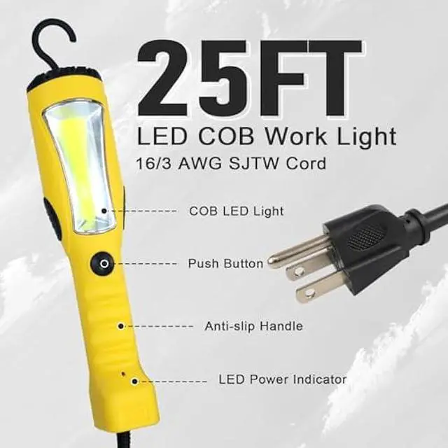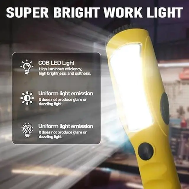 Super Bright Work Light - The COB LED handheld work light provides powerful 1200LM output and wide viewing angle. Anti-slip handle helps reduce fatigue for long time use.
