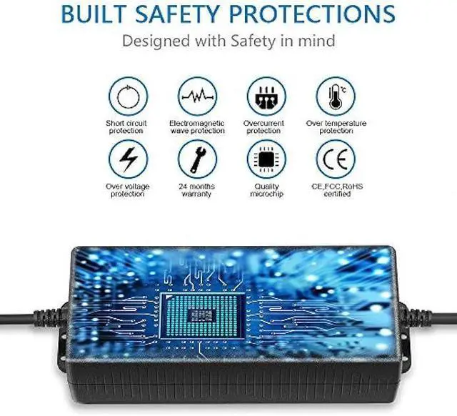 : Built-in multiple safety protection systems. Automatic over voltage cut-off, over current cut-off, over temperature cut-off, short circuit cut-off. We focus on producing premium quality and safety power adapters. No noise, no spontaneous combustion, no explosion, no fire hazard, safe to use. 6ft long power cable makes it convenient to use.