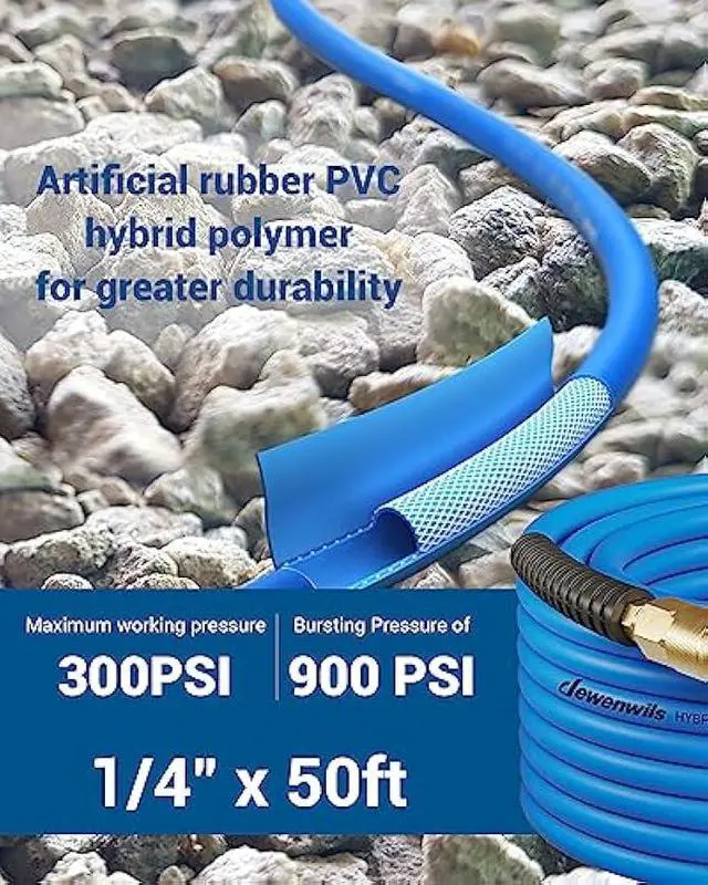 [Excellent Material] This hybrid polymer air hose is manufactured by synthetic rubber and pvc material for abrasion resistance and all weather use; designed with micro shield ensure abrasion resistant, protection against oil and chemicals