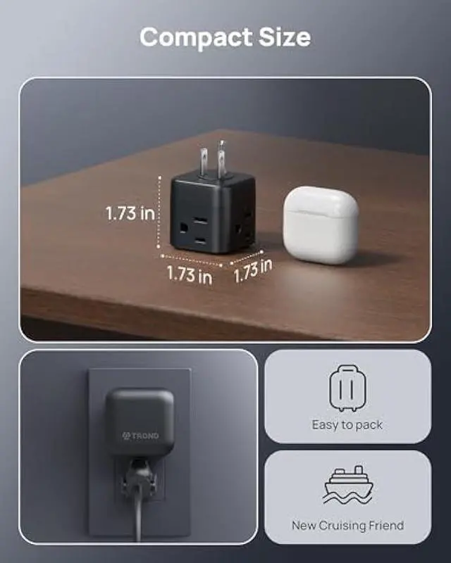 Compact Wall Outlet: Measuring just 1.73 x 1.73 x 1.73 inches, this compact outlet is ideal for business trips or travel. Its space-saving design makes it especially suitable for tight space such as kitchen or bathroom