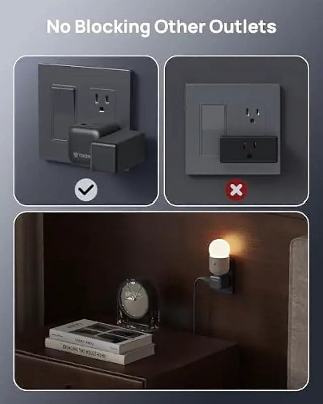 Non-Blocking Outlet Splitter: The side plug extender allows to use all 3 way plug adapter simultaneously. And it won't occupy the space of the second outlet of receptale. When plugged into the upper, the down remains available without obstructing