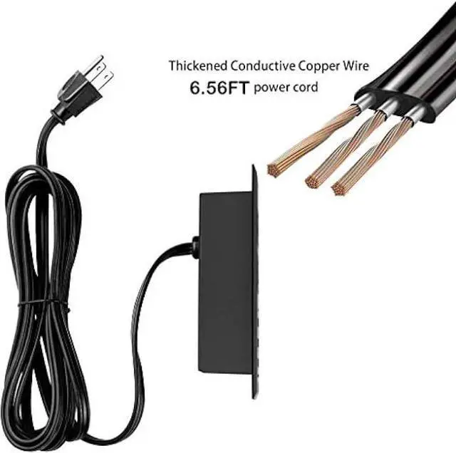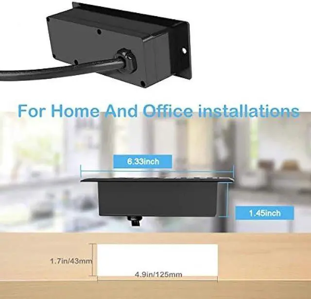 Recessed power strip with 6.56 ft power cord, allows easy access to 2 US Plugs & 3 USB Ports connections.