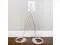 12 ft twin cord, 6 ft extension cords on each side from 2-prong splitter in the middle. The design allows you to hug the wall behind any dresser, table, tv, couch, table, nightstand, bed or other furniture.