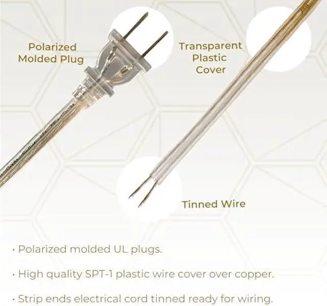 • UL LISTED LAMP KIT: SPT-1 Lamp Repair Wire. Polarized UL plugs ensure consistency for your installation. Vinyl jacket resists moisture, abrasion and prolonged exposure to sun