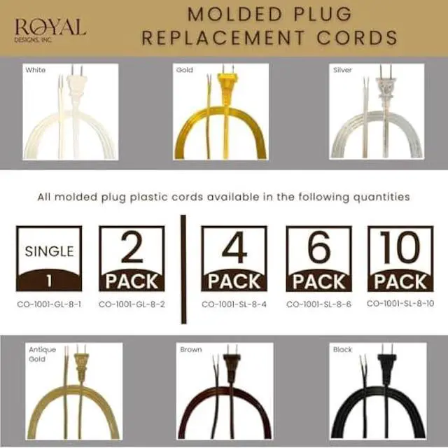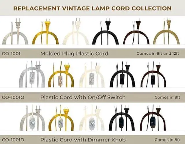 • LAMP CORD WITH PLUG: 8-foot Brown Color Lamp Cord with off-on line switch, easily accessible to any power outlet and end of cord tinned 0.25 and the off/on switch is 30 from the end of the cord