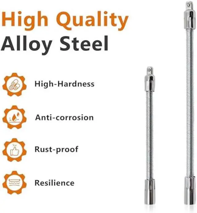 Material: Flexible socket extension is made of high strength alloy steel, flexible and strong, not easy to rust