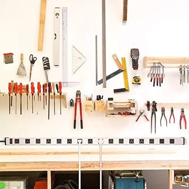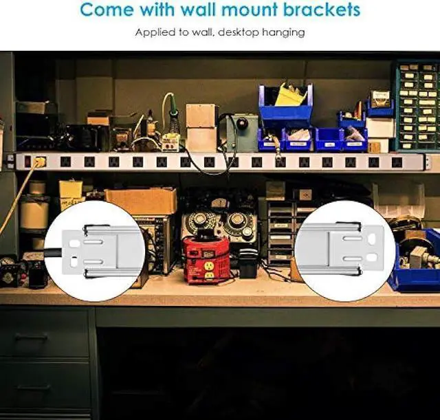 Heavy duty power strip come with mounting brackets to mount on the wall, for workshop, garage, commercial, shop, industrial use.