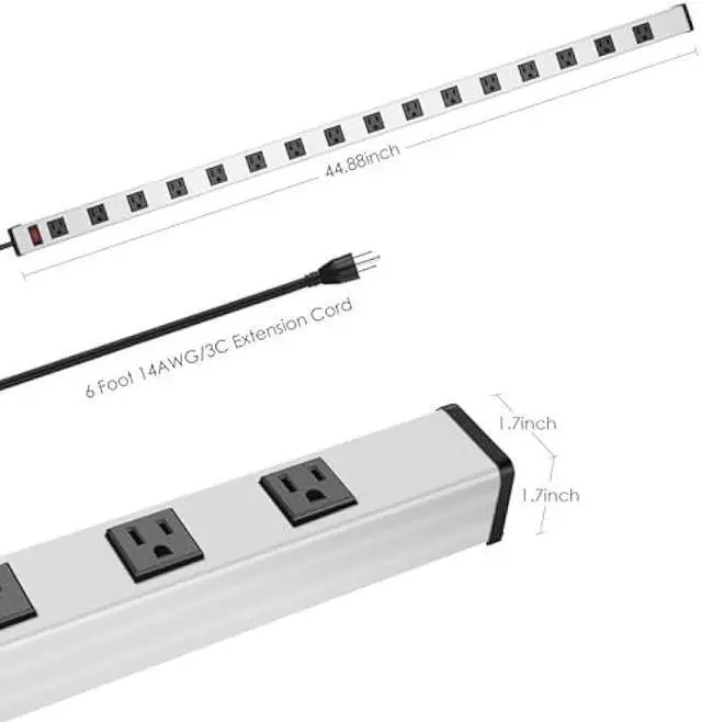 Sturdy metal power strip, the outlets are tight, increase the outlet capacity to 16 outlets, widely spaced design will be suitable for larger plugs.