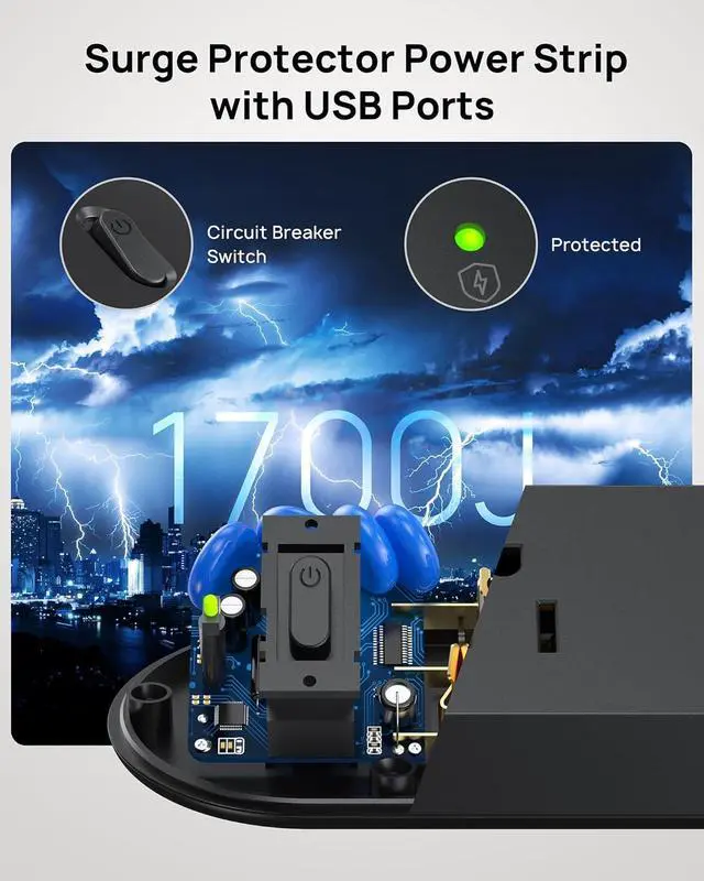 Power Strips with Surge Protection: This ETL-listed surge protector is made of top-grade UL94 V-0 flame-retardant material, has 1700J surge protection, and comes with a circuit breaker switch that controls the AC power to protect your devices from potentially damaging power surges
