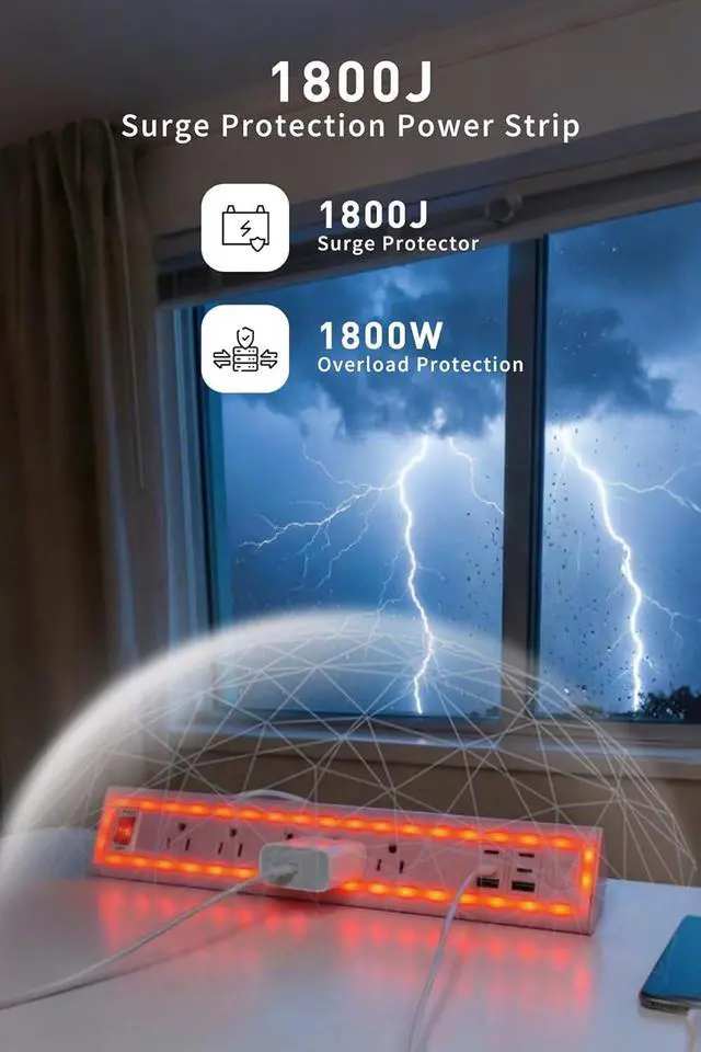 Professional-Grade Surge ProtectionBuilt with 1800J surge suppression and V0 fireproof housing,, short circuits, and overheatingideal for home offices and studios.