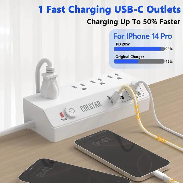 Fast & Efficient 20W USB C PD ChargingSay goodbye to slow charging. The integrated 20W USB C Power Delivery port charges your iPhone, iPad, or Android device at peak speed- up to 50% in just 30 minutes, while the USB A ports keep your accessories powered.