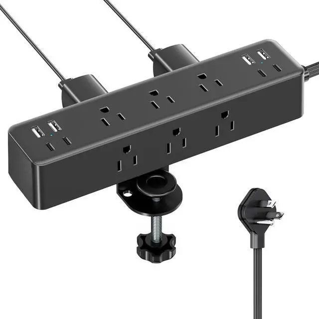 Easy to intallDesk power strip come with screws to mount on the table or table legs, fit max 1.7 inch tabletop edge thick. Desktop power strip with USB ports is very easy to mount, just fix the clamp to the table, and turn the button at the bottom to complete the installation for secure desk organization and tidy workspace.