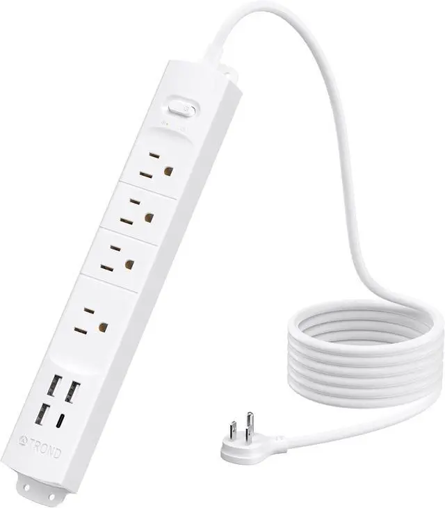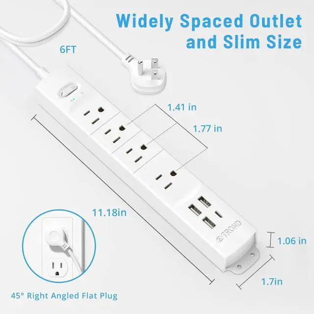 6ft Extesion Cord: This flat plug power strip comes with 6ft flat extension cord (1625W, 125V/13A), helping you get rid of tangling cords and cable clutter. The portable and slim size make it suitable for home office desktop workbench dorm room, etc.
