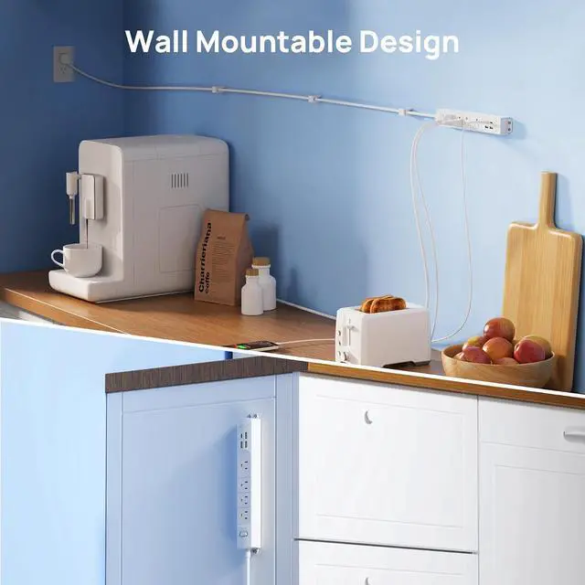 Ultra Flat Plug & Wall Mountable: The low-profile right angled flat plug design is great for stashing under or behind furniture. Four screw-mounting tabs allow this wall mount flat plug power strip to be securely installed on workbenches, behind the tv, garage, bedside, under counters/desks/cabinets, and dressers.